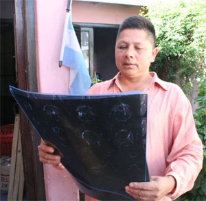 Marcos Aurelio con las radiografías entregadas en el hospital Vicente López – Retiro, Argentina.