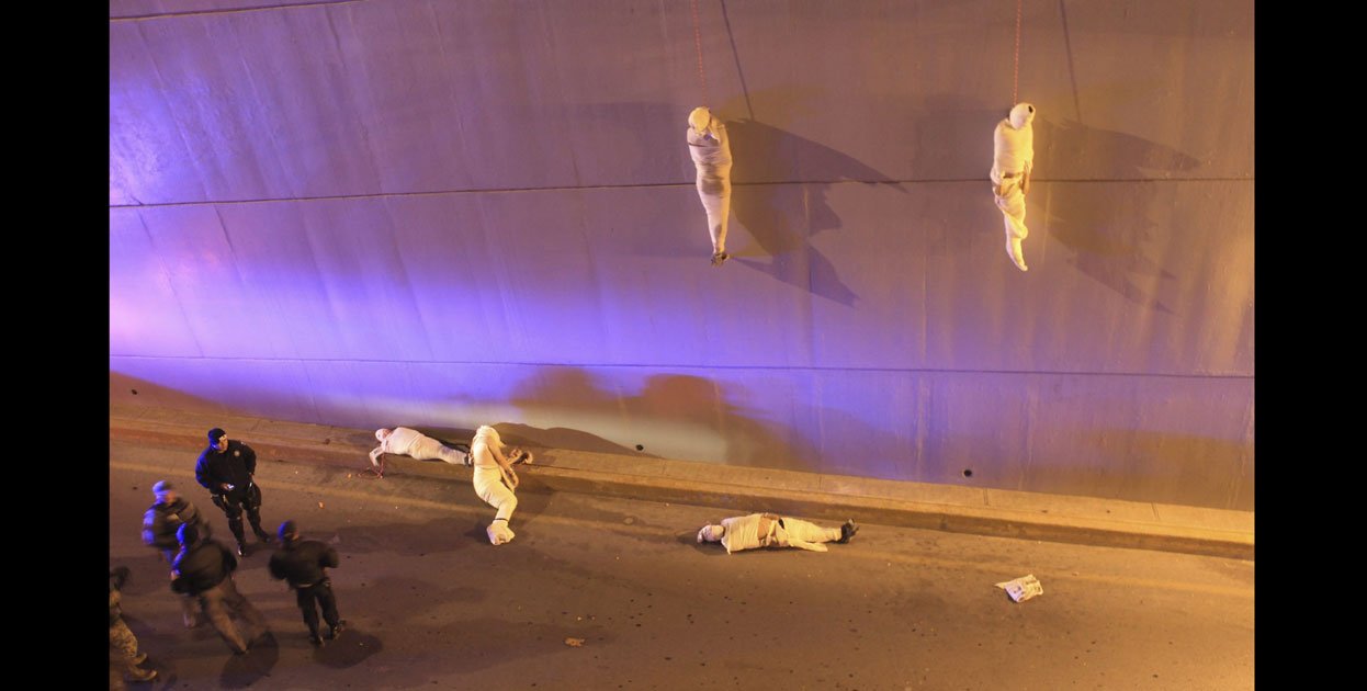 La fotografía realizada por el mexicano Christopher Vanegas ganó el tercer premio en la categoría de Temas Contemporáneos de la 57ª edición del World Press Photo. La imagen muestra a varias víctimas del crimen organizado, en Saltillo (México). Foto: EFE